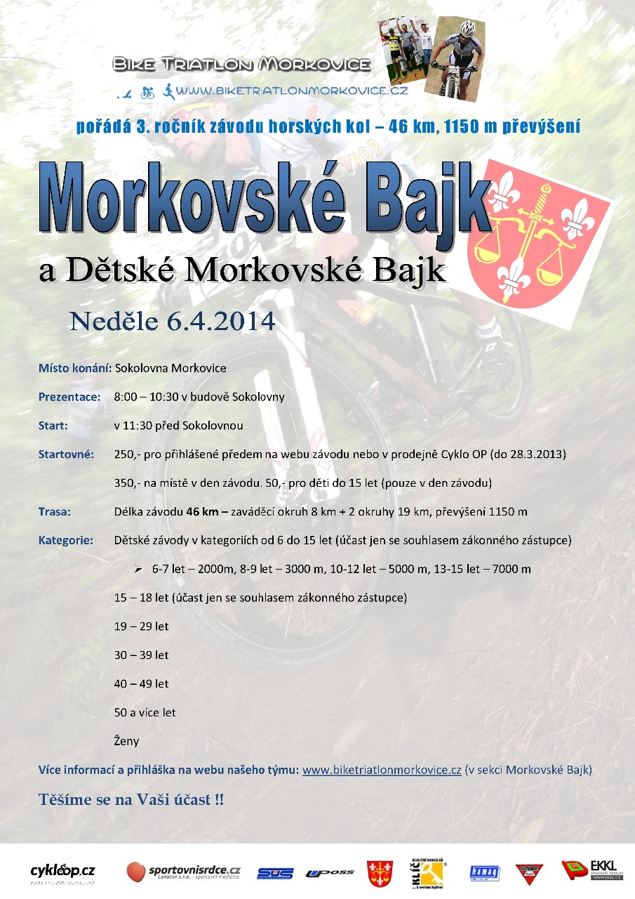 Bike Triatlon Morkovice pořádá v neděli 6. dubna třetí ročník závodu horských kol "Morkovské bajk". Součástí budou poprvé i závody dětí v několika věkových kategoriích od 6 až do 18 let.