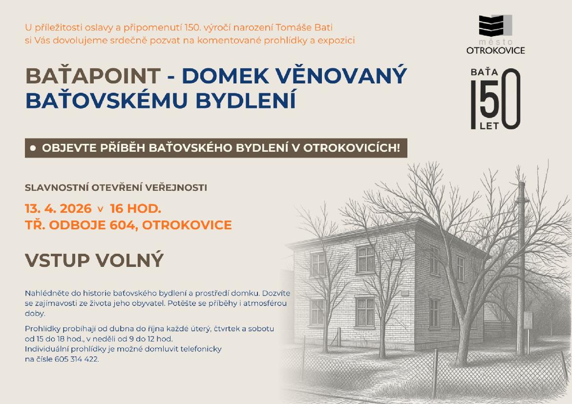 Otrokovice si v letošním roce připomínají 150 let od narození Tomáše Bati sérií akcí, které přibližují jeho odkaz i každodenní život v baťovské éře. Jednou z nich bude i zpřístupnění baťovského domku na křižovatce ulic Mánesova a třída Odboje (č. p. 604), který se veřejnosti slavnostně otevře v pondělí 13. dubna v 16 hodin.