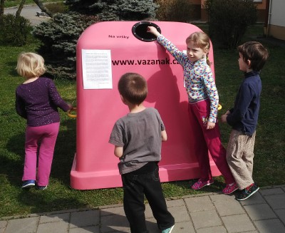 Od 1. dubna 2014 umístilo Občanské sdružení Vážaňák před Mateřskou školu Vážany (Osvoboditelů 60) velký růžový kontejner, který je určen právě na sběr víček od PET lahví. Do sběru víček se mohou zapojit nejen děti z MŠ Vážany, jelikož k němu má přístup každý, kdo chce pomoci.