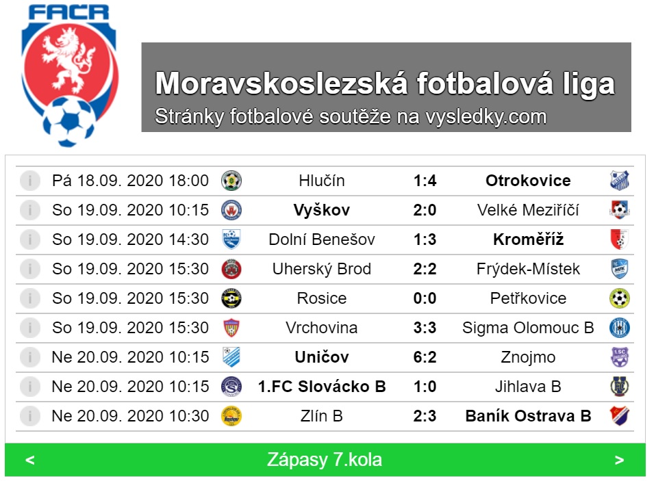 Výsledky 7. kola MSFL a tabulku naleznete v obrazové příloze.