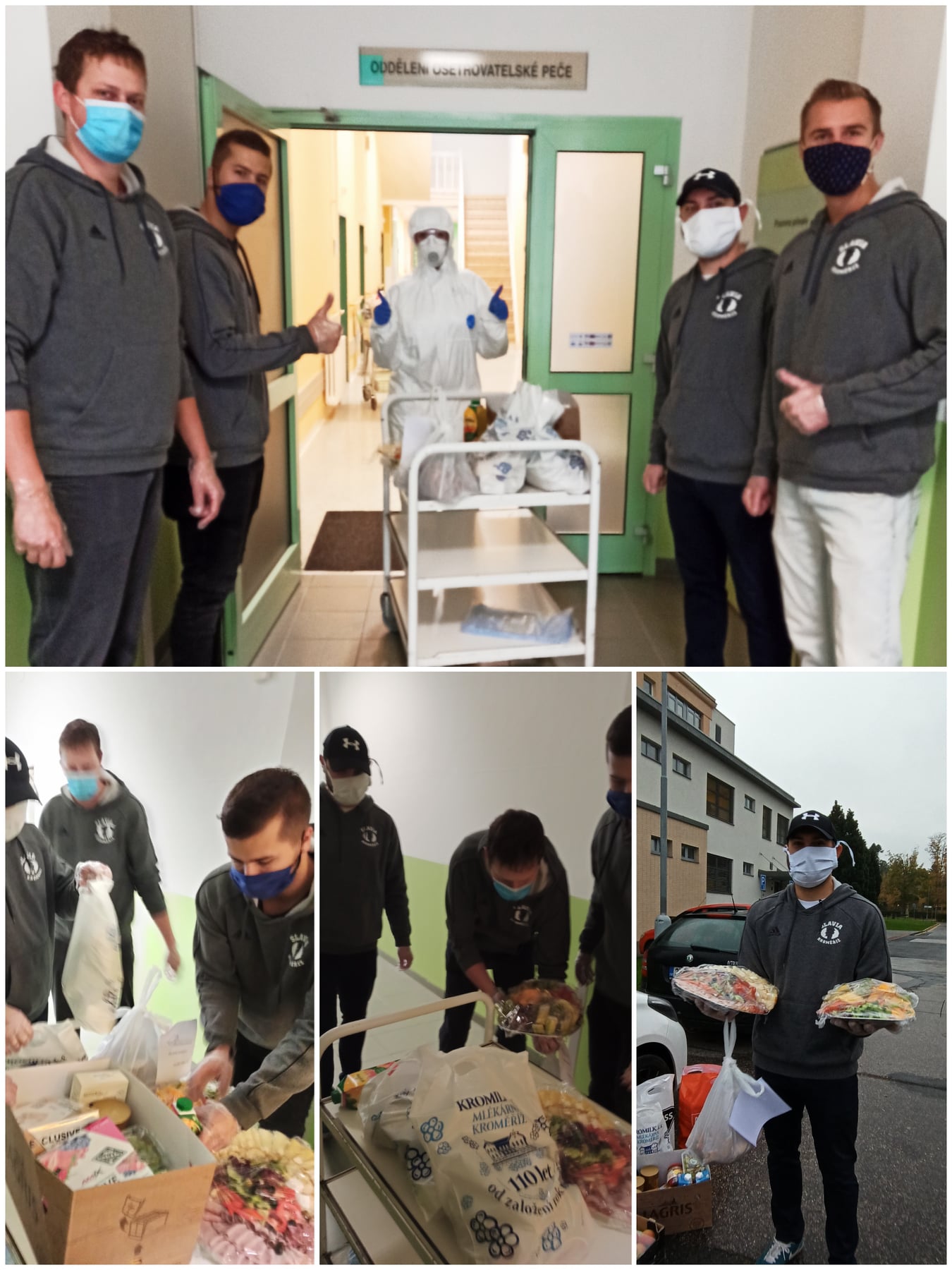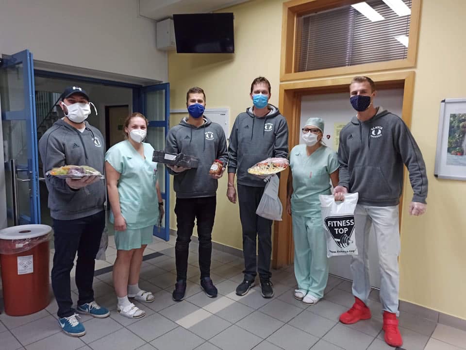Basketbalisté z týmu TJ Slavia Kroměříž poděkovali zdravotnímu personálu Kroměřížské nemocnice za jejich obětavost v koronavirovém období a předali nemocnici věcné dary pro občerstvení doktorů a sester.