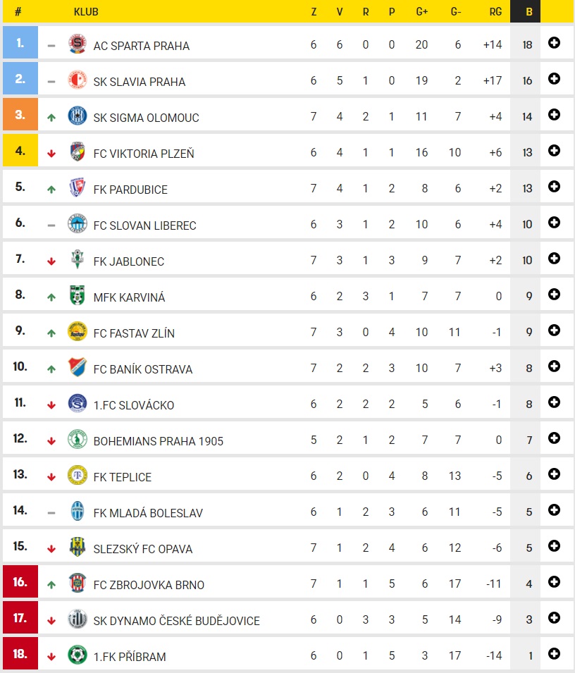 Tabulku Fortuna:ligy (platnou po sobotních zápasech) naleznete v obrazové příloze.