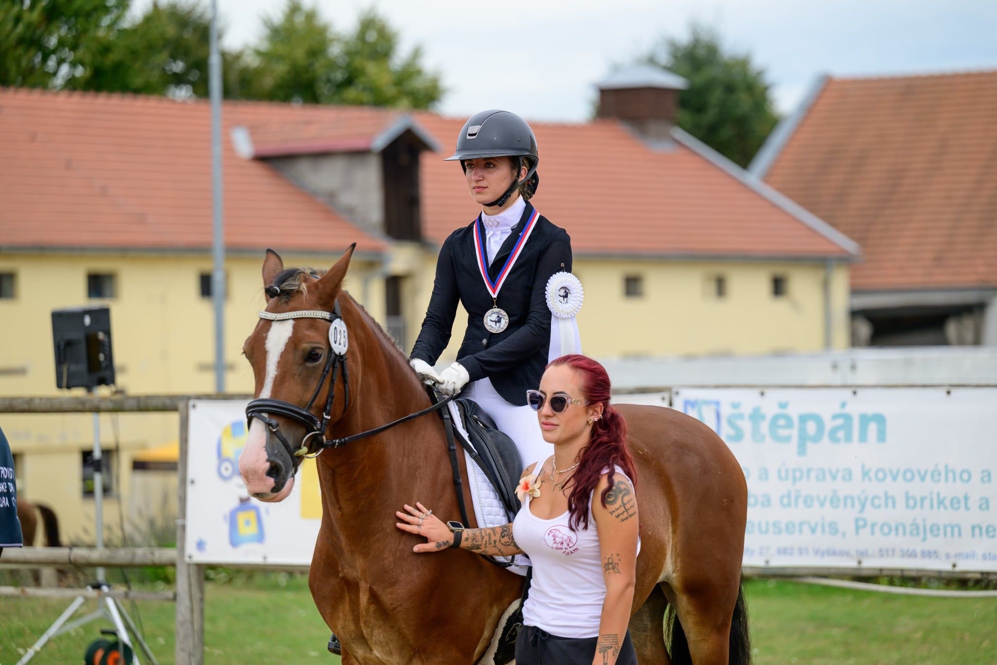 Na konci srpna jsme ve Vyškově na drezurním mistrovství oblasti získali hned dvě medaile – Michaela Kelová vybojovala stříbro mezi juniory a Nela Vojtěšková s Kopretinkou přidala bronz v pony kategorii.