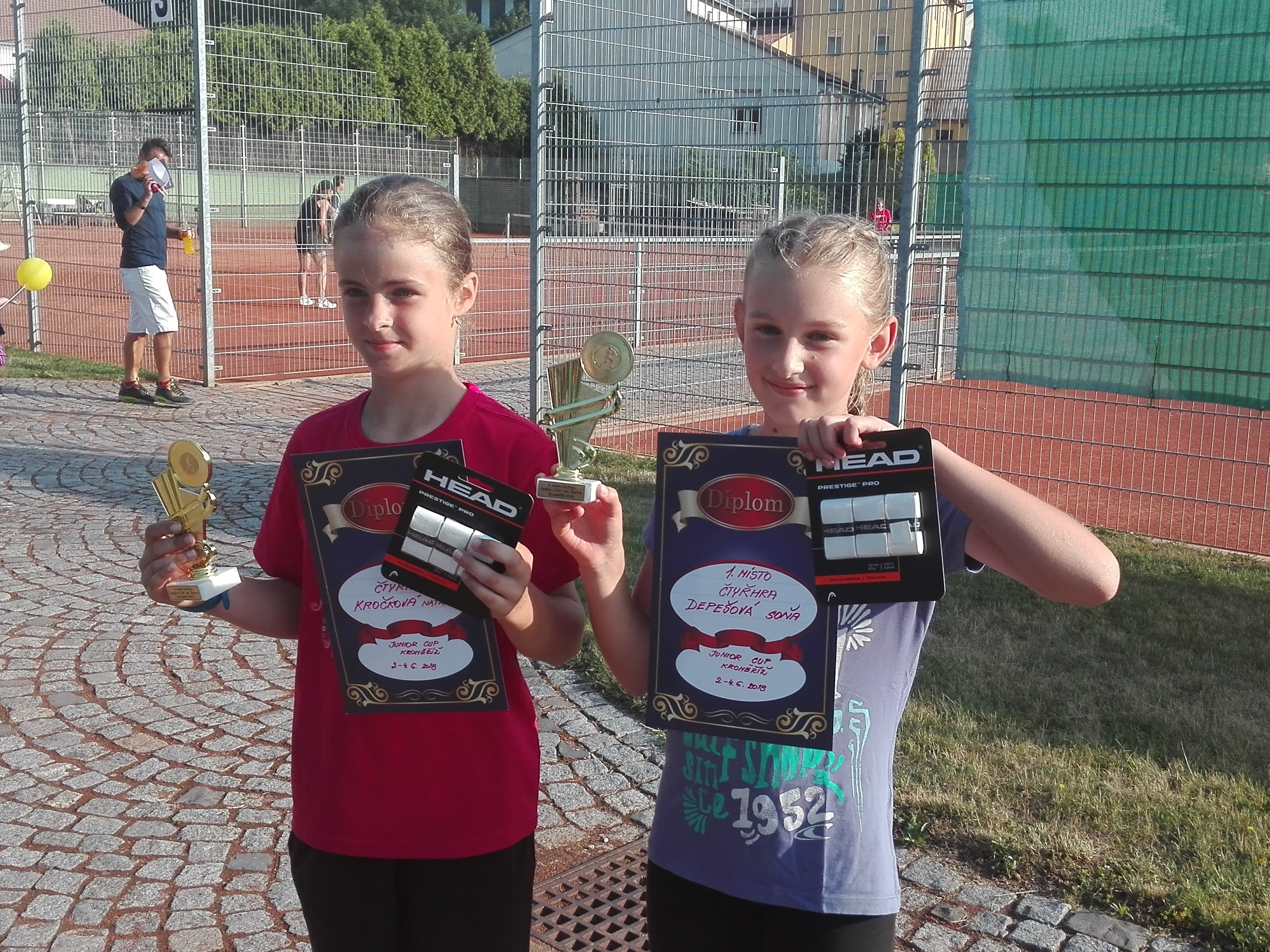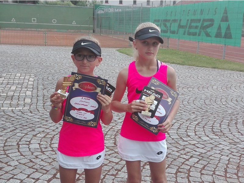 Talentované mladé domácí hráčky N. Chalupová a N. Dvořáková (3. místo ve čtyřhře)